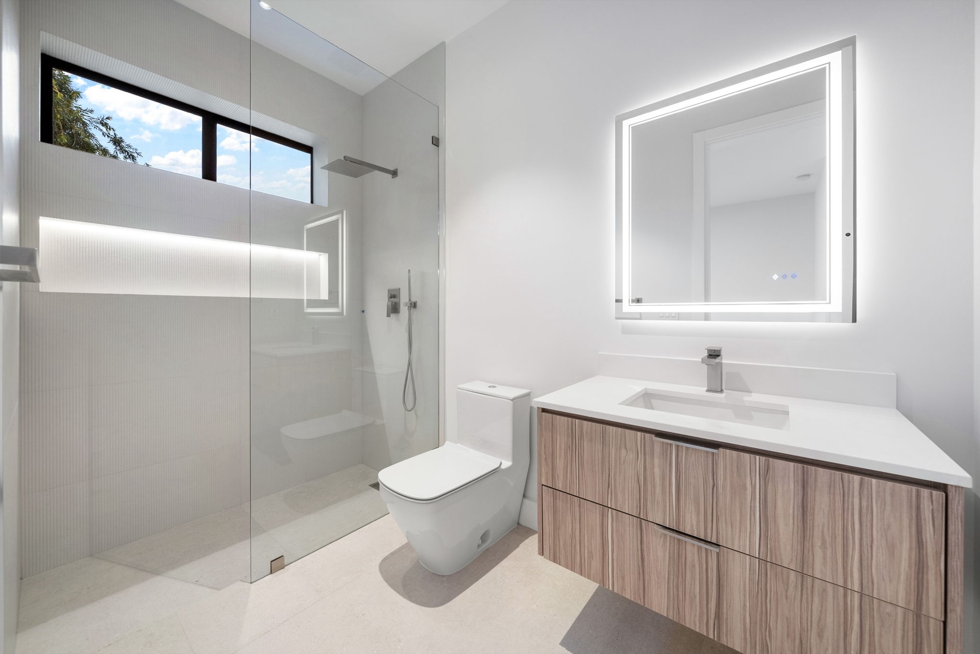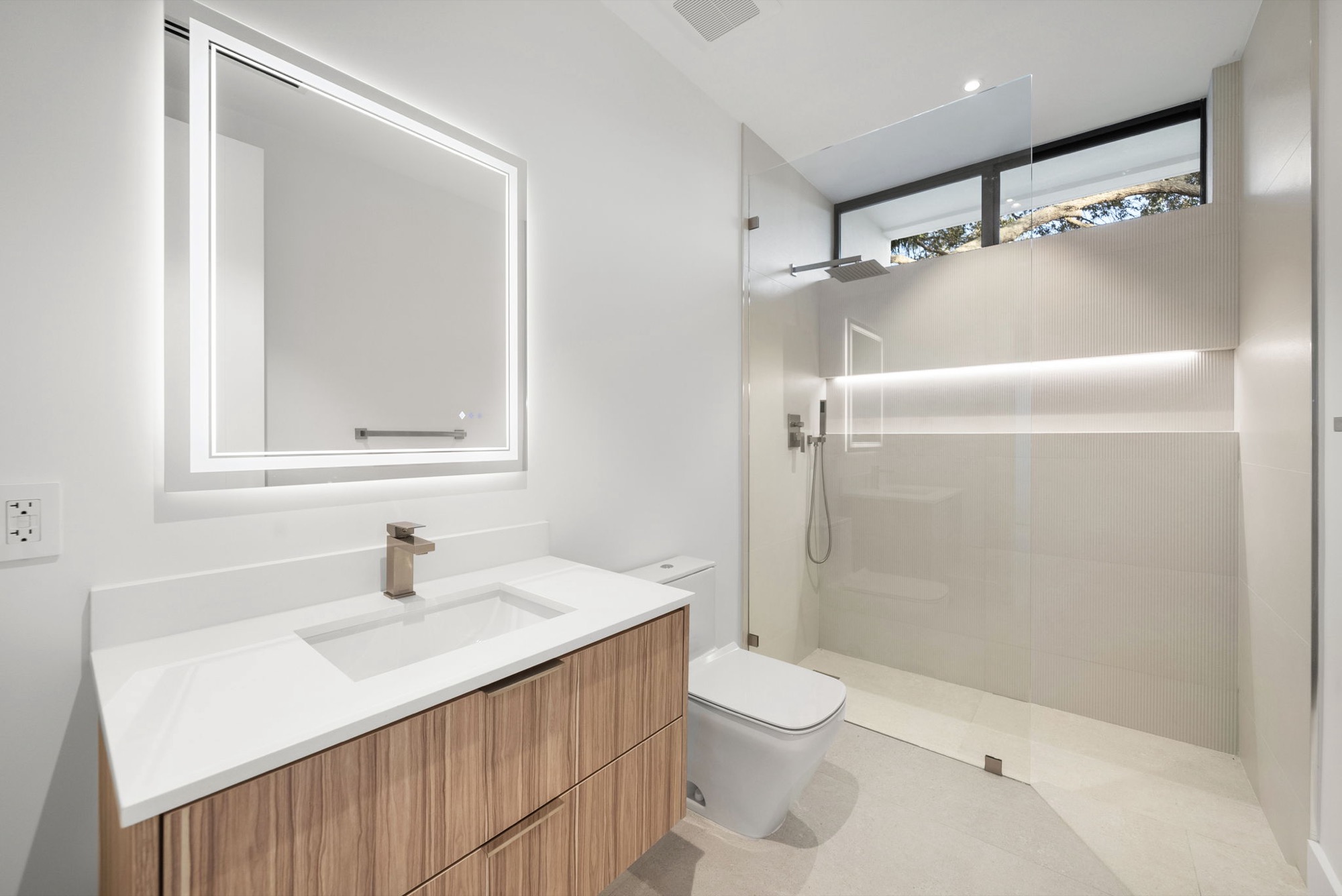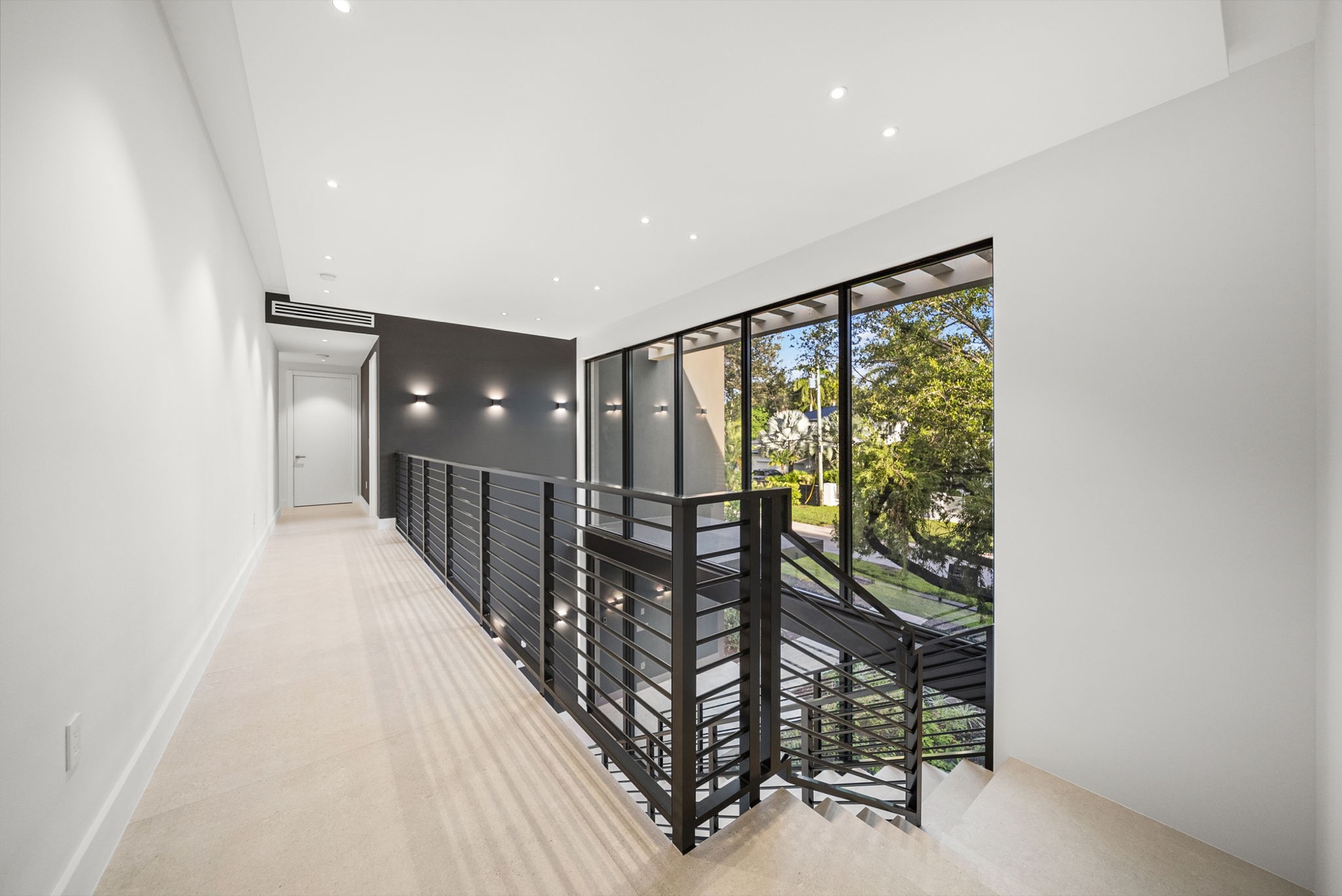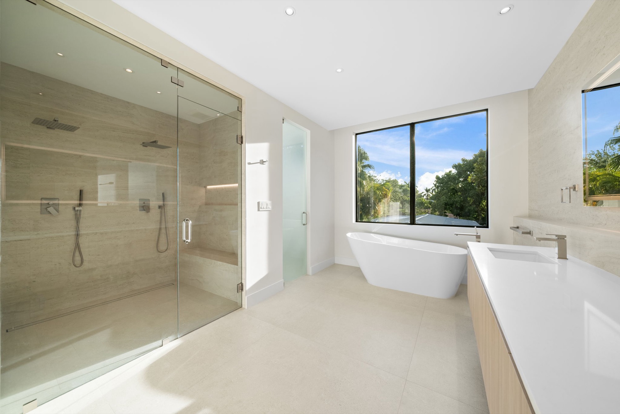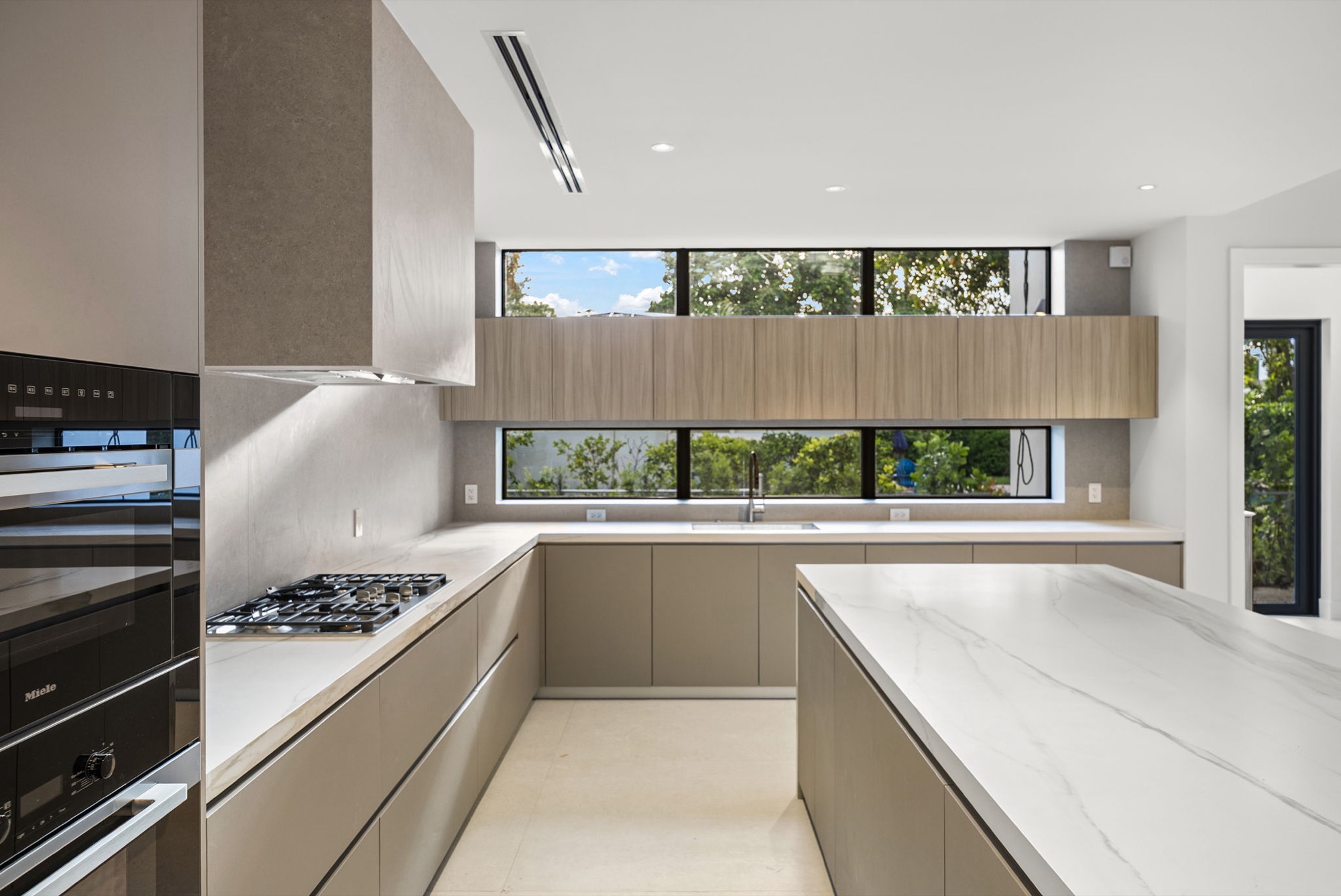 Our end result was a captivating two-winged house on two stories with a tropical modern style integrated with nature with an oversized Great Room with a higher-than-usual ceiling that opens to the whole backyard while also connecting the different home spaces.