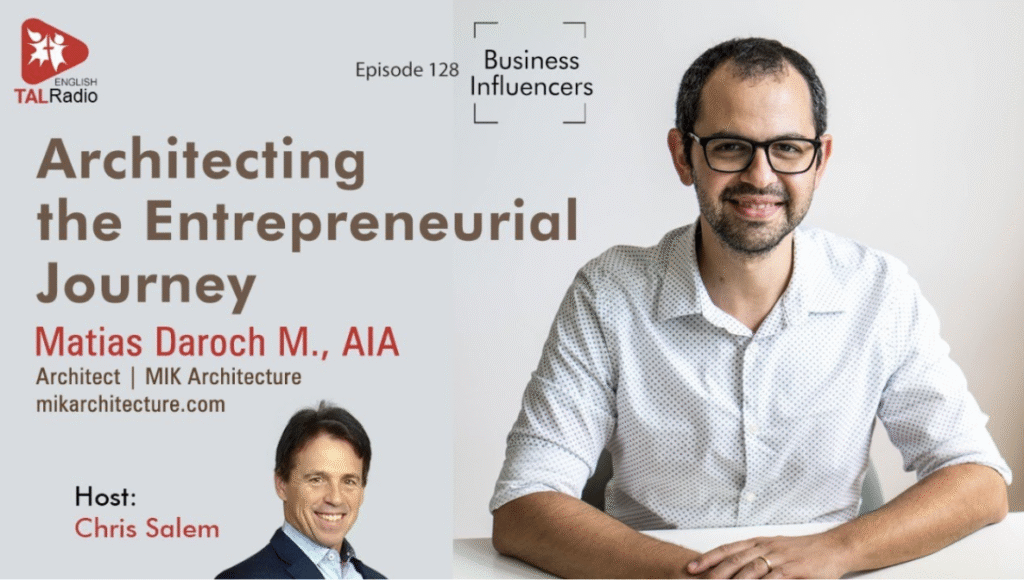 Matías Daroch joined Chris Salem on the "Business Influencers" podcast to discuss "Architecting the Entrepreneurial Journey." He shared his inspiring path from his early architectural and entrepreneurial pursuits in Chile to establishing a thriving real estate development and architecture practice in Miami.
