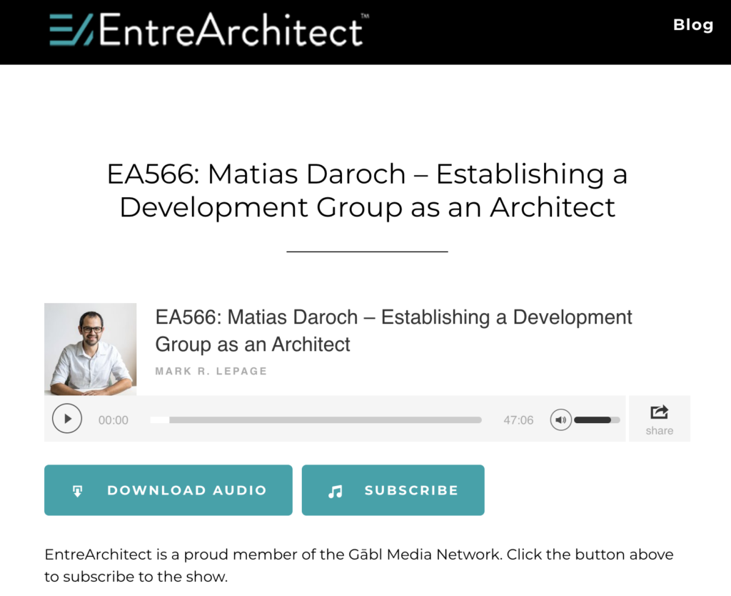 Tune into the podcast episode to hear Matías Daroch share his full journey and expert advice for architects looking to establish and grow a development group.